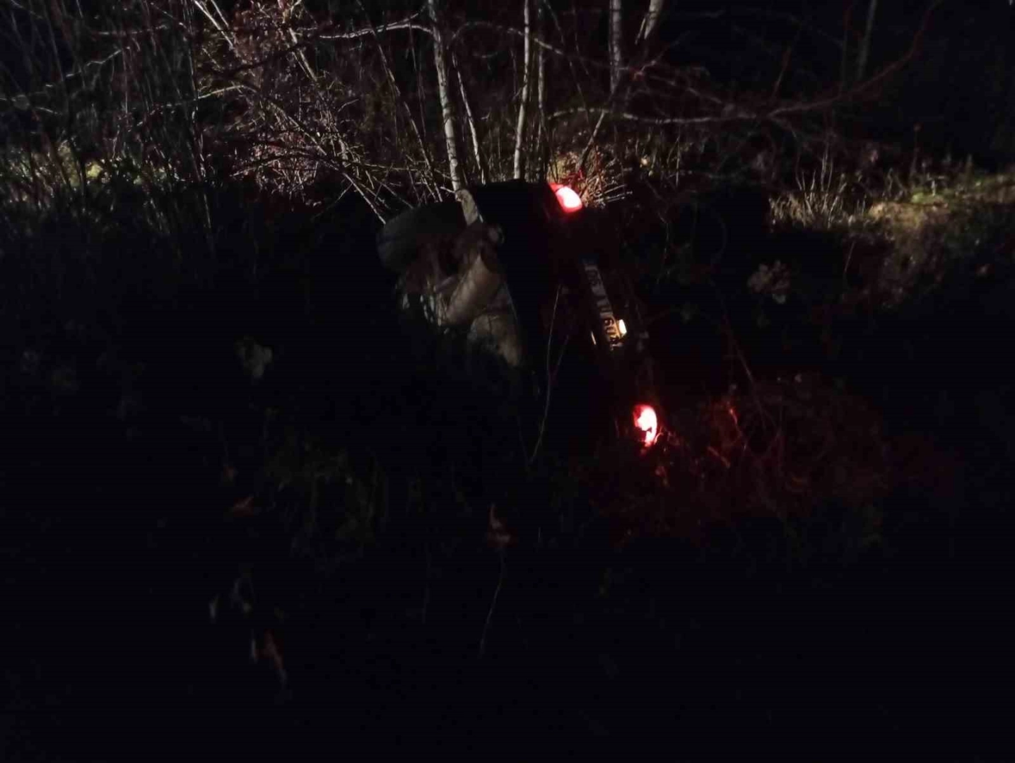 Edinilen bilgiye göre, Bartın’ın Ulus ilçesine bağlı Buğurlar Köyü Kuzören Mahallesi’nde seyir eden S.A. idaresindeki 06 AU 604 plakalı araç, sürücüsünün direksiyon hakimiyetini kaybetmesi sonucu yoldan çıkarak şarampole devrildi. Kazada yaralanan sürücüye olay yerinde ilk müdahalesi yapılırken, sürücü tedaviyi reddetti. Kazanın ardından aracın yakıt deposundan sızan yakıt ise panik yaşattı. Olay yerinde LPG ve benzin kokusu üzerine jandarma ekipleri, kaza yerinde geniş güvenlik tedbirleri alındı. Yol bir süreliğine trafiğe kapanırken, aracın yanına kimse yaklaştırılmadı. Olay yerine çağrılan itfaiye ekiplerinin müdahalesinin ardından araç şarampolden kurtarılarak, olay yerinden çekildi.