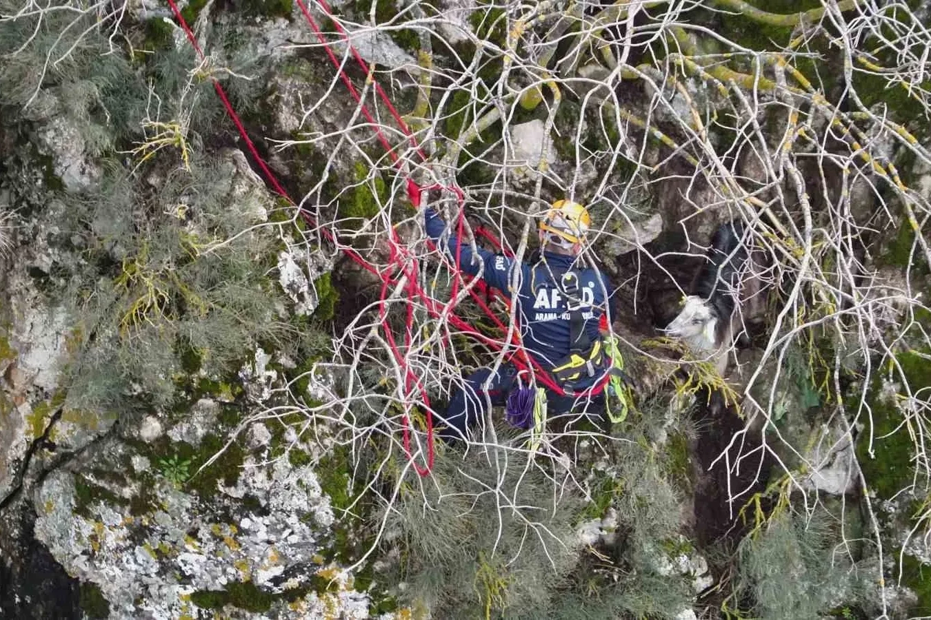Burdur’un Çeltikçi ilçesinde dağlık alanda mahsur kalan keçi, ekiplerce kurtarılarak sahibine teslim edildi. Edinilen bilgiye göre, dün Çeltikçi’ye bağlı Bağsaray Köyü yakınlarında bir keçinin dağlık ve sarp arazide mahsur kaldığı ihbarı üzerine Burdur İl Afet ve Acil Durum Müdürlüğü (AFAD) ekibi harekete geçti. Bölgeye intikal eden ekipler keçiyi mahsur kaldığı yerden kurtarıp sahibine teslim etti.
