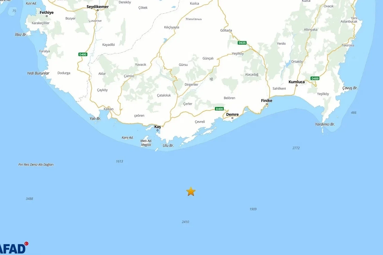 Kaş açıklarında 3.8 büyüklüğünde deprem meydana geldi