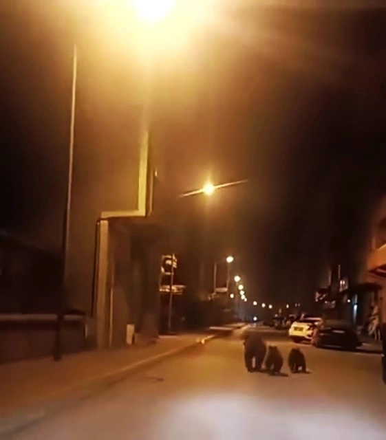 Anne ayı ve iki yavrusu, gece saatlerinde ilçe merkezine indi. Seyir halinde olan bir sürücü ilçe merkezi Menderes Caddesi üzerindeki 3 ayıyı fark etti. Cadde boyunca koşan ayılar sürücü tarafından cep telefonu kamerasıyla görüntülendi.