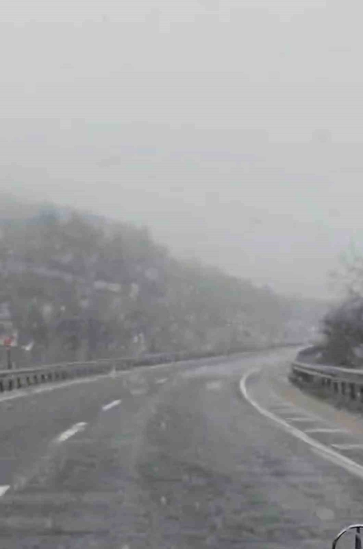 Karabük-Çerkeş kara yolunda başlayan yağış, özellikle yüksek kesimlerde etkisini gösterdi.