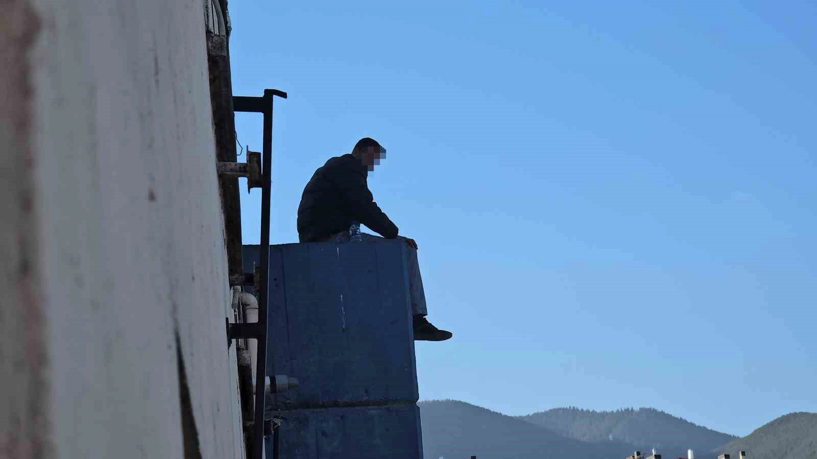 Karabük’ün en işlek noktalarından biri olan Kemal Güneş Caddesi’nde elindeki kavalıyla sokak sanatçılığı yapan bir kişi, zabıta ekiplerinin kavalını almasının ardından 6 katlı binanın çatısına çıkarak eylem yaptı.