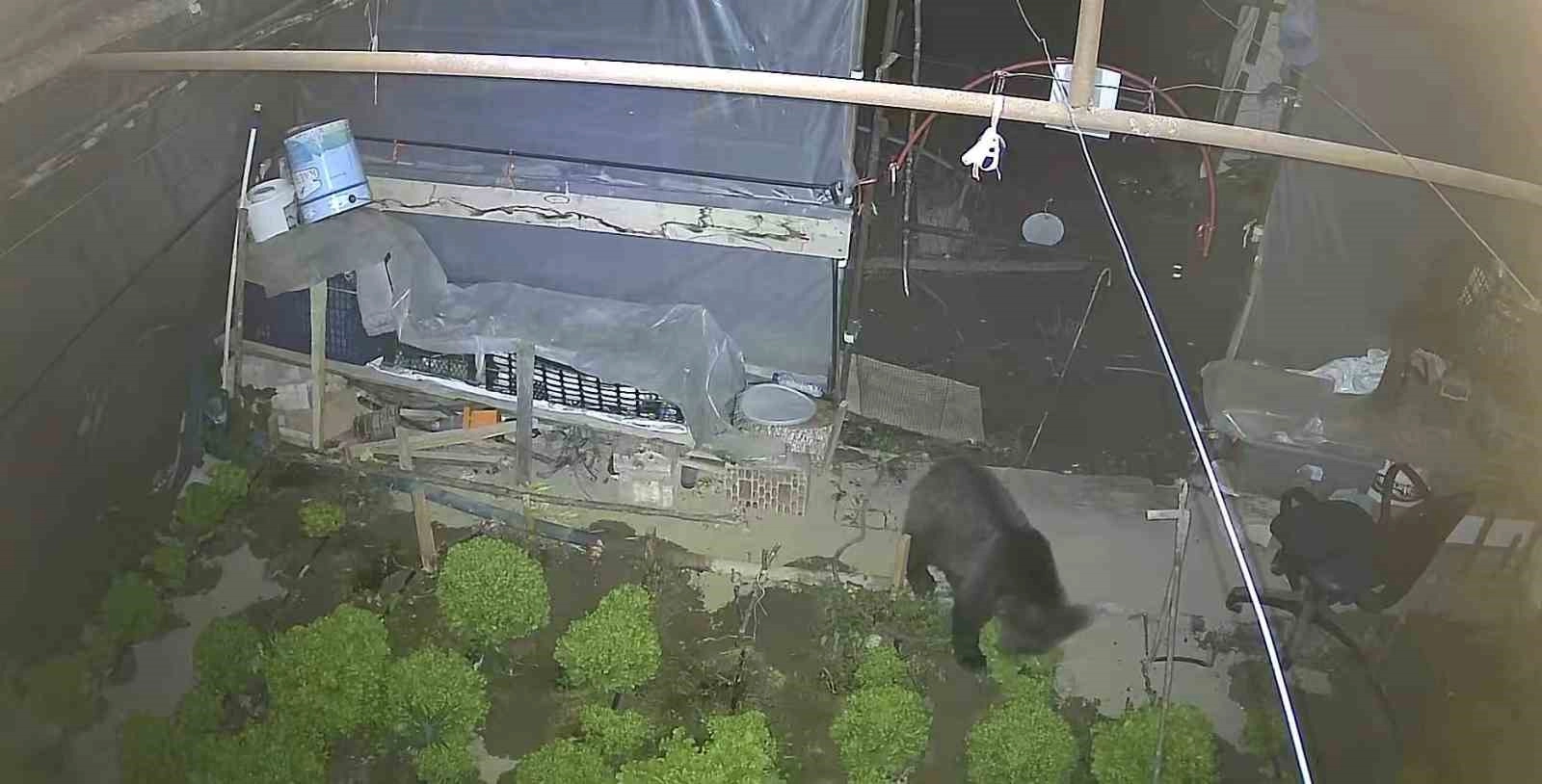 Güvenlik kamerasına yansıyan görüntülerde, yavru ayının çadırın içinde marulları yemeye başladığı ve ardından kapalı olan kapıdan tırmanarak geri gidiyor. Mahalle sakinleri ise bölgede sık sık ayı görülmeye başlandığını belirterek yetkililerden önlem alınmasını istedi.