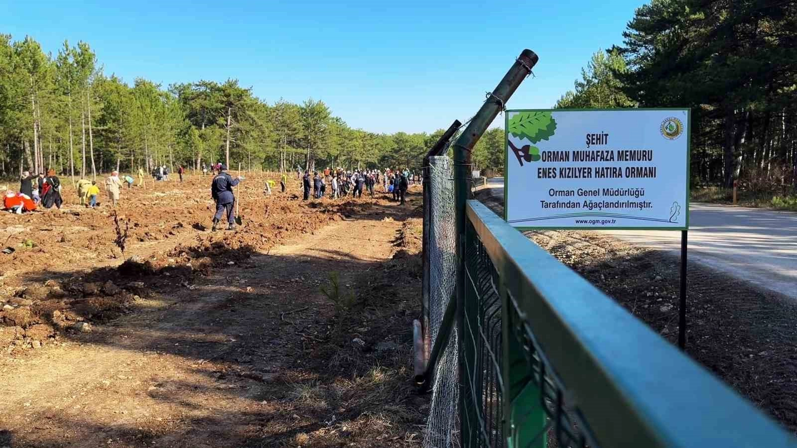 Karabük’te "Milli Ağaçlandırma Günü" dolayısıyla düzenlenen etkinlikte, Eskişehir’deki orman yangınını söndürme çalışmaları sırasında şehit olan orman işçisi Enes Kızılyer adına çeşme açılışı yapılarak hatıra ormanına fidan dikildi.