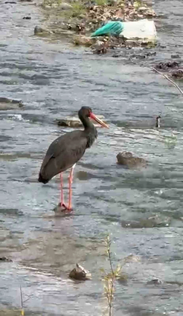 Merkeze bağlı Güney Köyünde gezintiye çıkan Veteriner Hekim Olcay Elieyioğlu, çay içerisinde kara leyleği fark etti.
