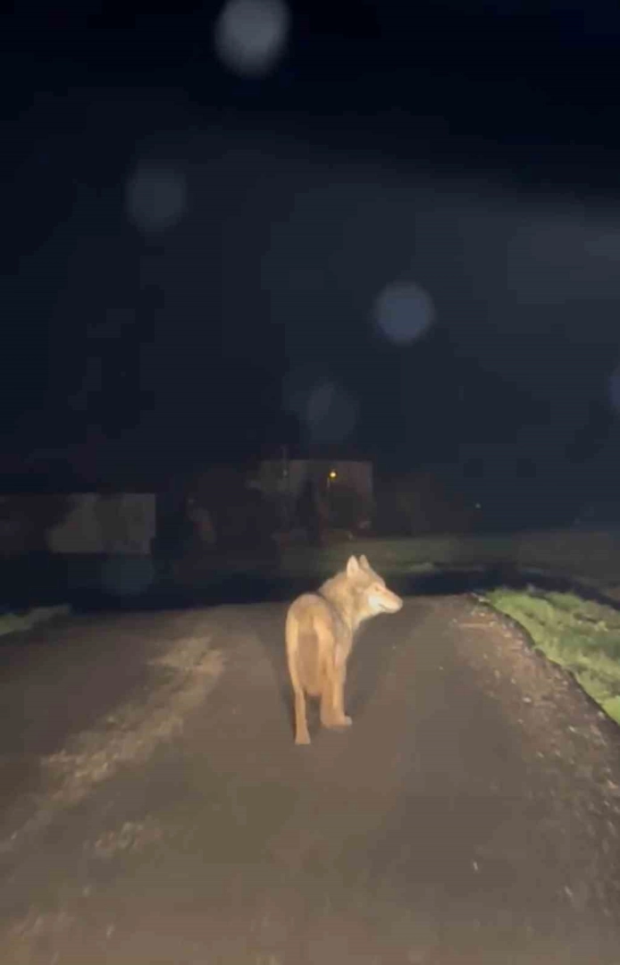 İlçeye bağlı Bedil köyünde yiyecek arayan bir kurt yerleşim yerine indi. Bir sürücü aracıyla seyir halindeyken yolda koşan hayvanı fark etti.
