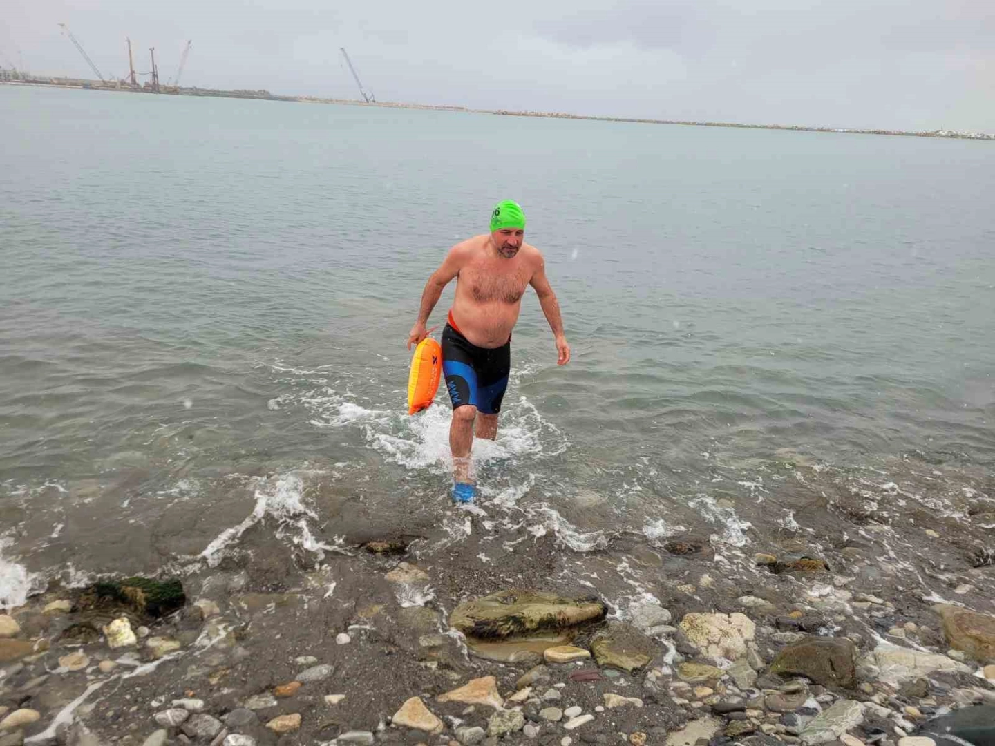 Kastamonu’nun İnebolu ilçesinde soğuk ve karlı havaya aldırış etmeyen vatandaş denize girerek yüzdü.