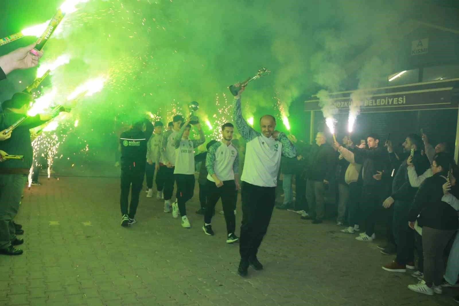 Okullararası Yıldızlar Voleybol Türkiye Şampiyonu ortaokul öğrencileri Kastamonu’nun Bozkurt ilçesinde yüzlerce araçlık konvoy, meşaleler ve havai fişeklerle coşkuyla karşılandı.