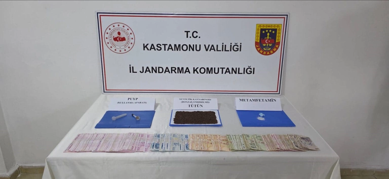 Edinilen bilgiye göre, Kastamonu İl Jandarma Komutanlığı ekiplerince uyuşturucu madde imal ve ticareti yapan şahıslara yönelik yürütülen çalışmalar neticesinde, M.Ü.’nün aracında 4 Nisan tarihinde yapılan aramada bir miktar metamfetamin, kannabinoid ve suçtan elde edildiği değerlendirilen 34 bin TL nakit para ele geçirildi. Jandarma ekiplerince gözaltına alınan M.Ü. tutuklandı.