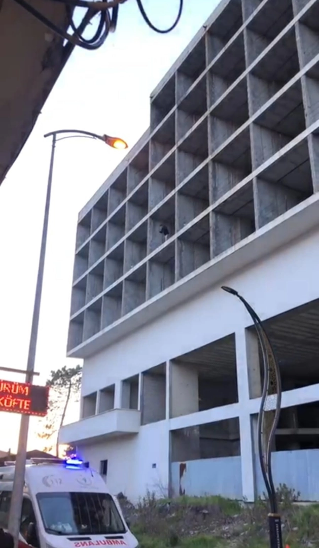 Bu esnada T.T., çevredeki dört katlı bir inşaatın çatısına çıktı. İhbar üzerine olay yerine sağlık ve takviye jandarma ekipleri sevk edildi. İkna çalışmaları sırasında ekiplere zorluk çıkaran T.T., kendisini kurtarmak isteyen ekipleri aşağı çekmeye çalıştı.