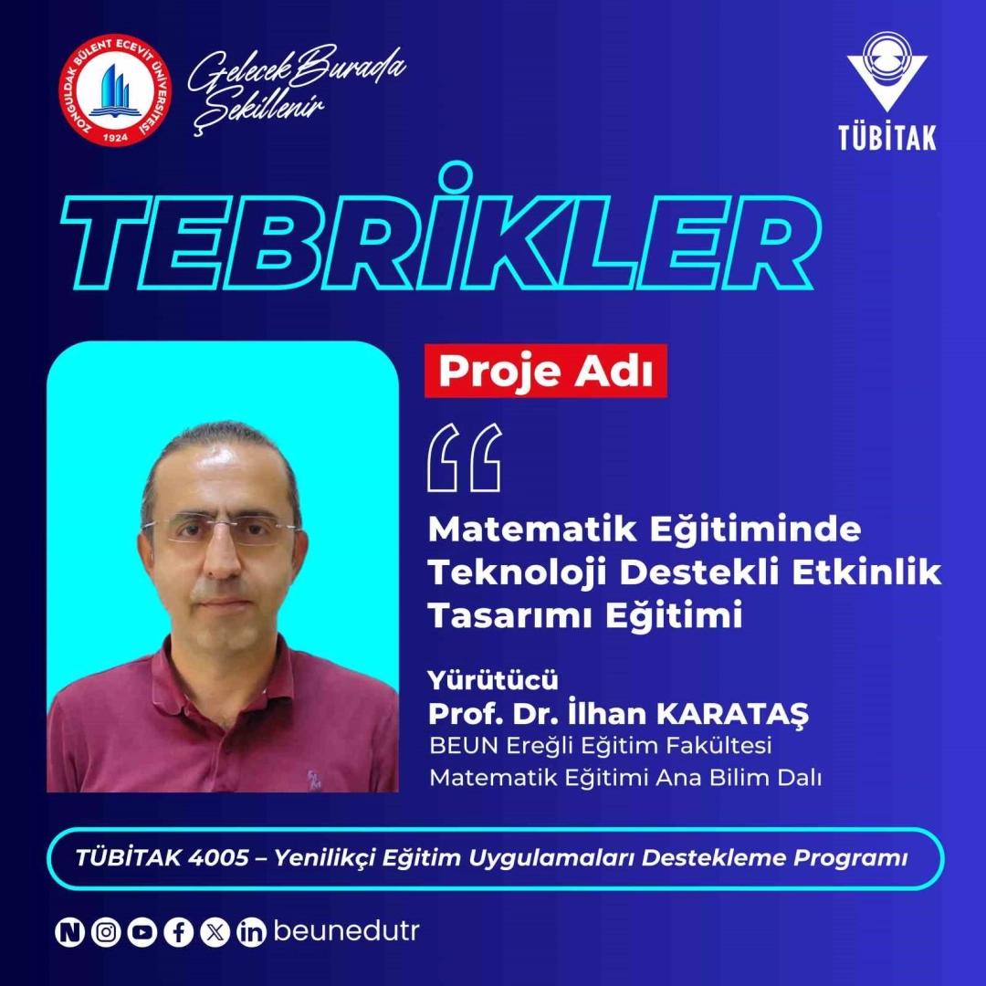 Dr. İlhan Karataş’ın yürütücülüğünü üstlendiği proje, Türkiye Bilimsel ve Teknolojik Araştırma Kurumu (TÜBİTAK) tarafından 4005-Yenilikçi Eğitim Uygulamaları Destekleme Programı kapsamında destek almaya hak kazandı.