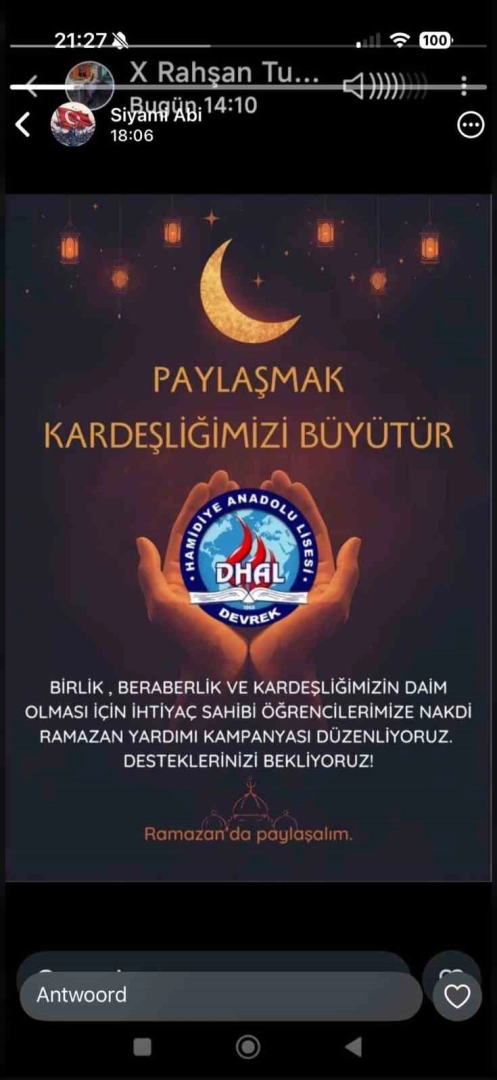 Zonguldak’ın Devrek İlçesinde eğitim öğretim faaliyetlerin, sürdüren Hamidiye Anadolu Lisesi tarafından hayata geçirilen" Paylaşmak Kardeşliğimizi Büyütür" temalı yardım kampanyasında okulda eğitim gören ihtiyaç sahibi öğrencilere yönelik nakit yardımı gerçekleştirildi.