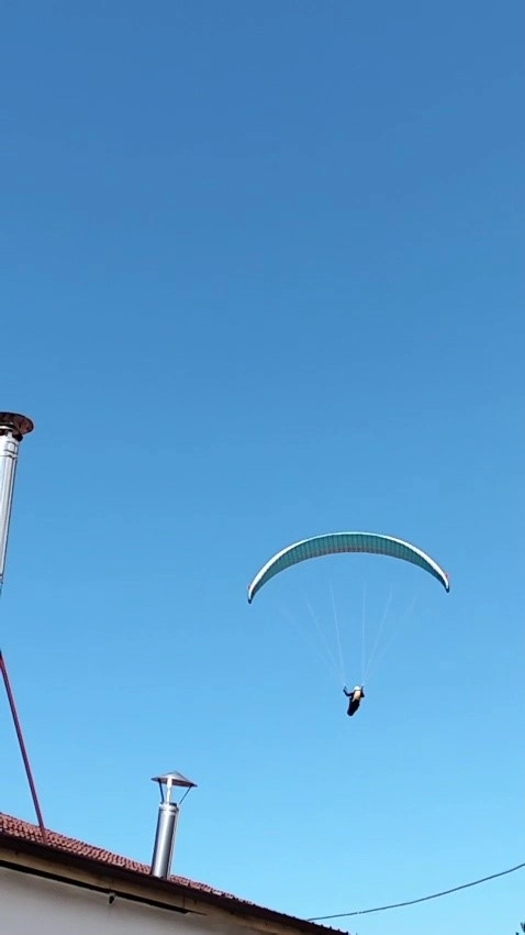 Zonguldak’ın Kilimli ilçesinde alçaktan uçan bir yamaç paraşütçüsünü çay içmeye davet eden vatandaş arasında ilginç anlar yaşandı