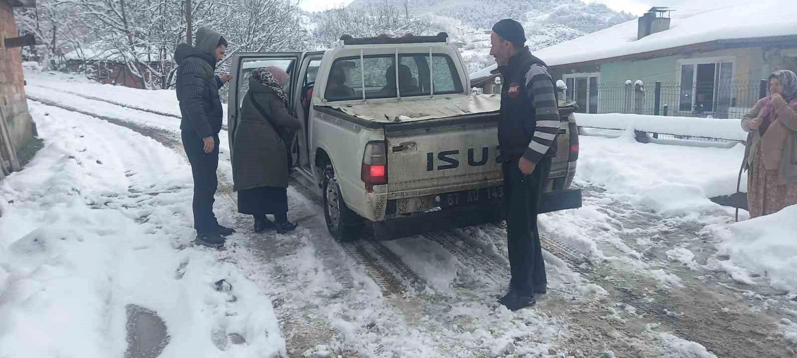İlçeye bağlı Mahmutoğlu Köyünde ikamet eden Zeliha Karagöz (77) isimli kadın aniden rahatsızlandı. İlçenin uzak köyleri arasında yer alan ve yoğun kar yağışından dolayı ambulans çıkamadığı köy hizmetlerinden yardım isteyen hasta ve hasta yakınlarının imdadına Devrek’te ki köy hizmetleri ekipleri yetişti.