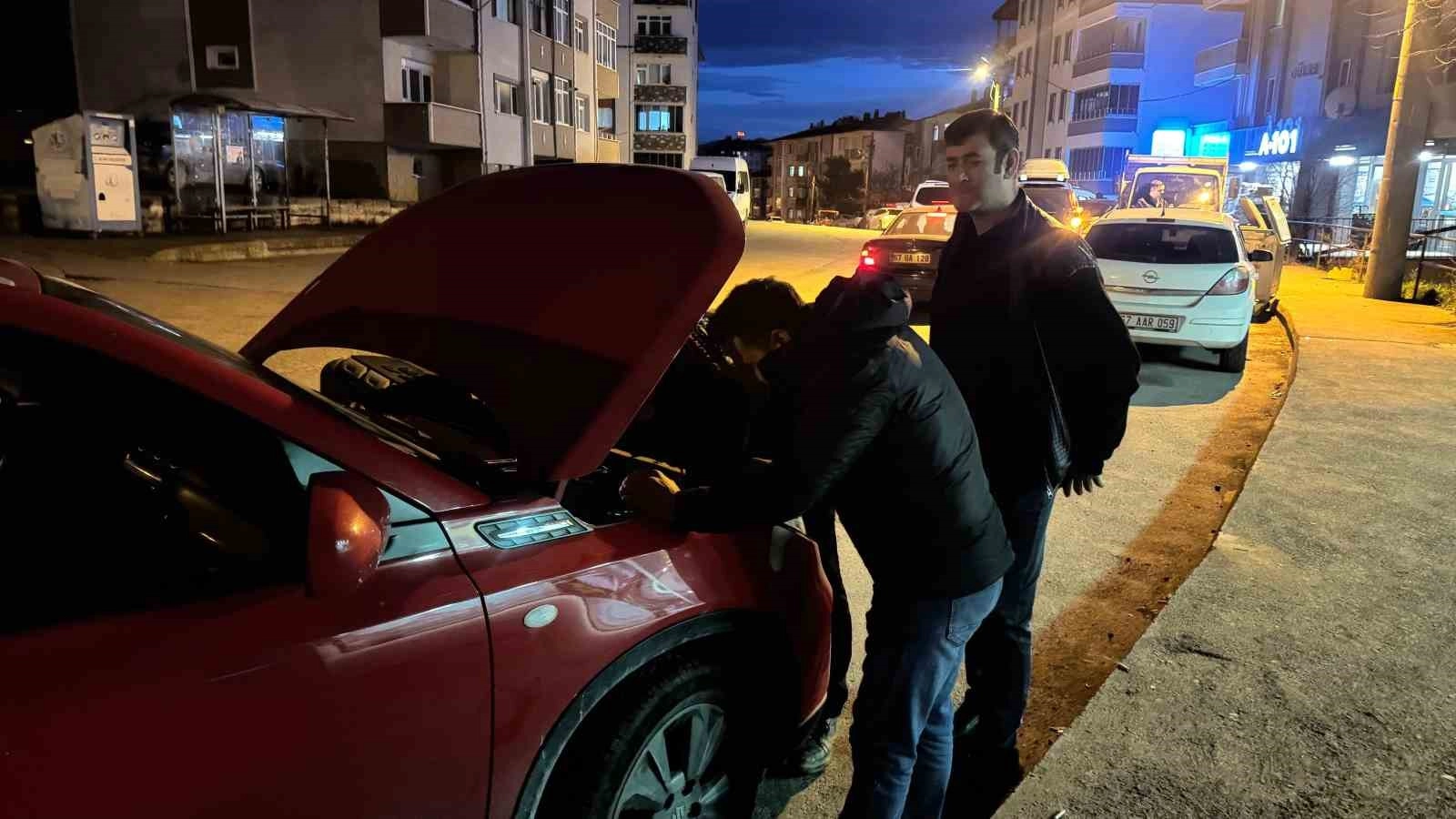 Olay, Zonguldak’ın Alaplı ilçesi Yeni Siteler Mahallesinde meydana geldi. Araç sahibinin otomobiline binip iş yerinden ayrıldığı sırada aracın kaputundan kedi sesi geldiğini fark etti. Hemen aracını kenara çekip kaputu inceleyen otomobil sahibi, bir kedinin kayışa sıkıştığını fark etti.