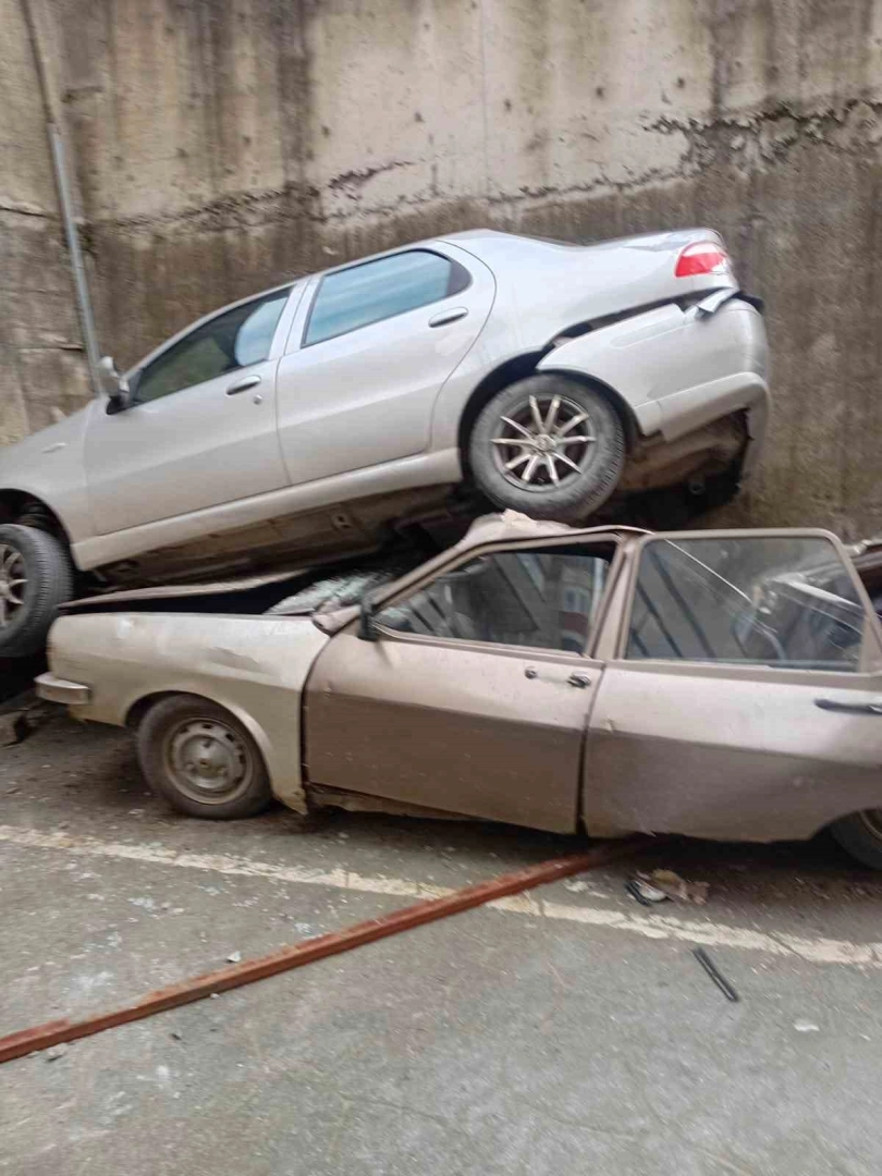 Zonguldak’ın Alaplı İlçesi Karaağaç Mahallesi’nde meydana gelen kazada, rampada geri doğru kayan bir otomobil yaklaşık 8 metrelik istinat duvarından düşerek park halindeki başka bir aracın üzerine çıktı.