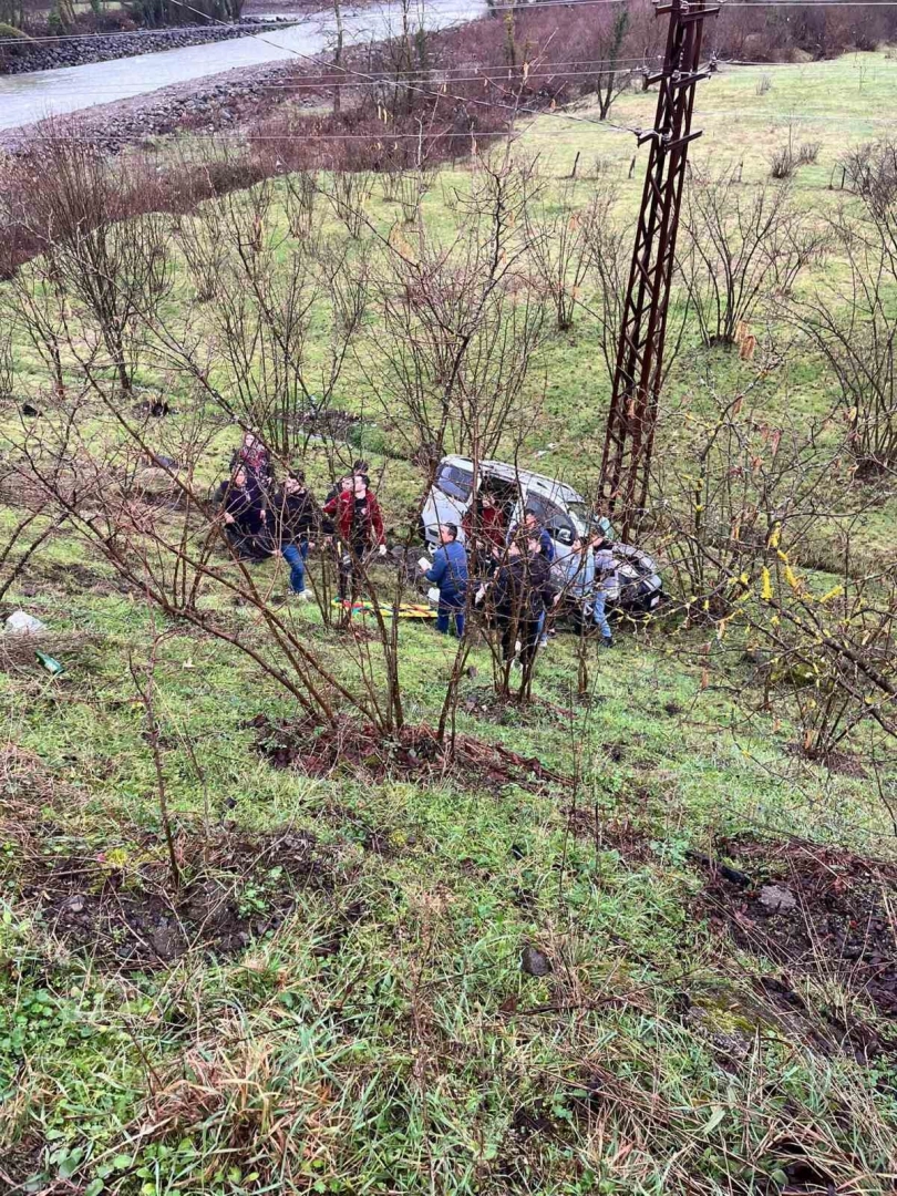 Kazada araçlardan biri kontrolden çıkarak şarampole yuvarlandı.