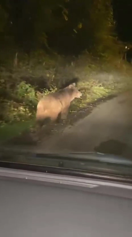 Edinilen bilgiye göre, ilçeye bağlı Güdüllü köyüne inen bozayı, Ozan Evcin tarafından kaçarken saniye saniye görüntülendi. Görüntülerde köy yolundan kaçarak ilerleyen ayının, hızlıca araçtan uzaklaşmaya çalıştığı yer aldı. Ayının, gecenin ilerleyen saatlerinde ve sokaklarda kimsenin bulunmadığı bir anda görüntülenmesi, muhtemel bir tehlikeyi engellemiş oldu.